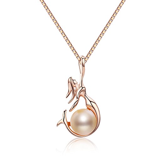 925 Sterling Silver Freshwater Cultured Pearl and Mermaid Pendant Necklace